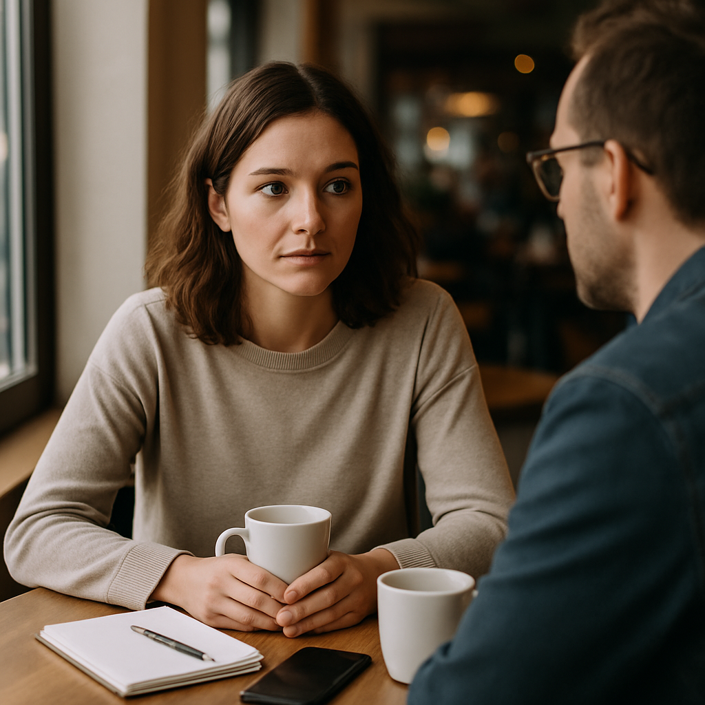 • Wähle einen neutralen Ort: Kein Restaurant mit lautem Hintergrund, kein Bettgespräch.